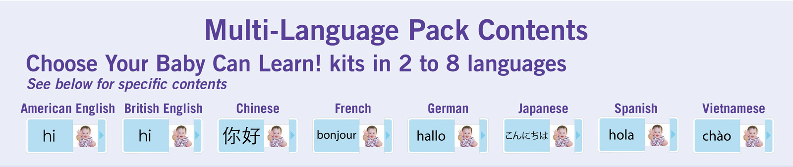 Your Baby Can Learn! kits in two or more languages of your choice. Choose two or more of the following language kits: